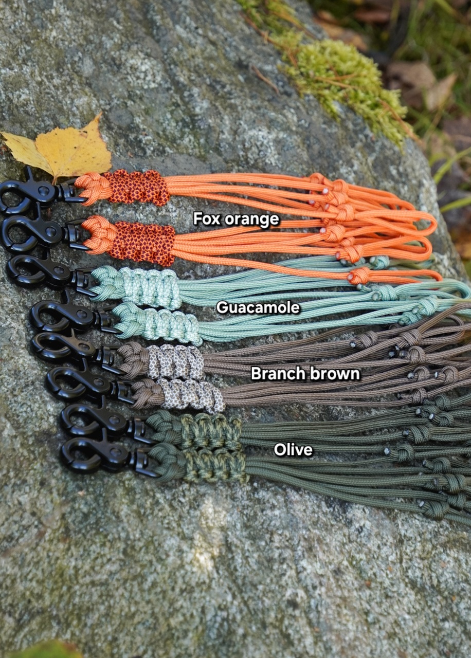 Paracordista valmistettu riistalenkki pienriistan kuljettamiseen tai riiputtamiseen.
